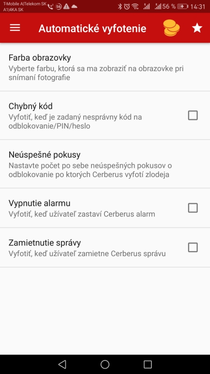 Automatické vyfotenie umožní nastaviť, kedy má telefón automaticky spraviť fotku a poslať vám ju. Takýmto spôsobom môžete získať podobizeň nového neoprávneného majiteľa vášho smartfónu.