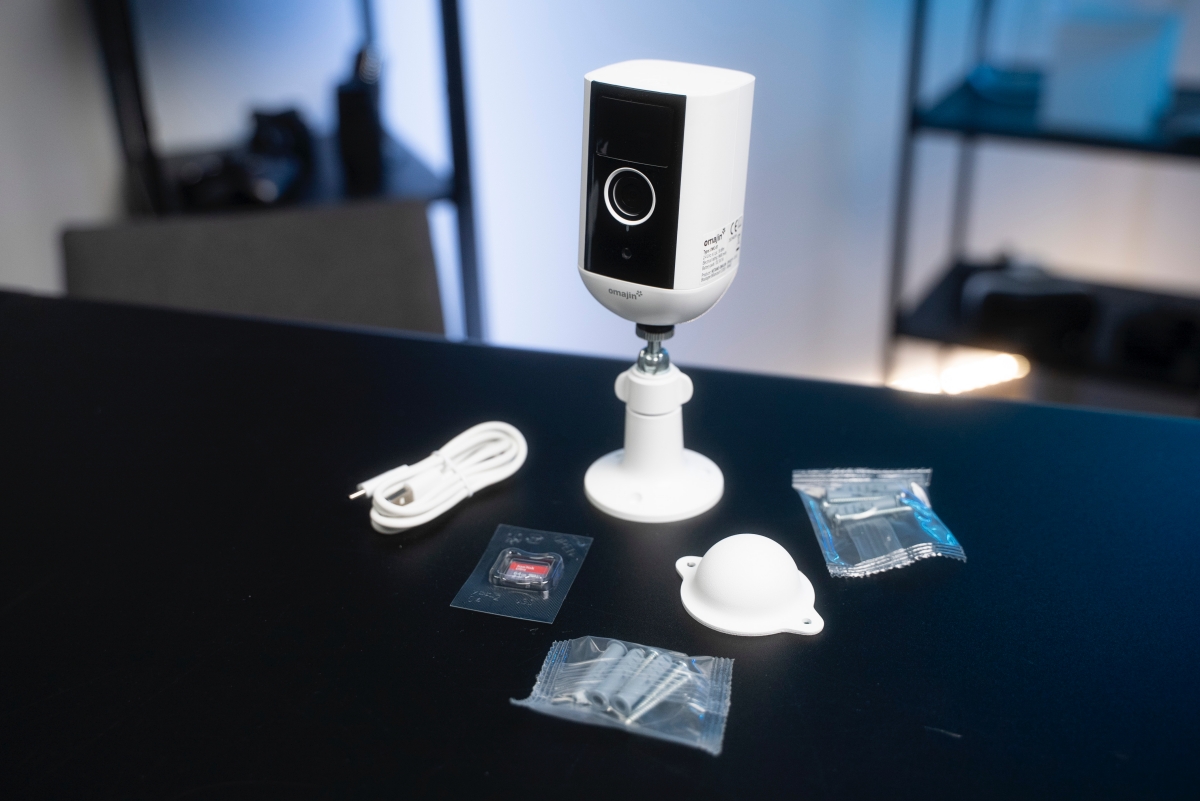 Kamera Omajin sa montuje rovnako jednoducho ako zvonček, vyžaduje minimum zásahov do fasády a nabíjanie je rovnako jednoduché. Vďaka bezdrôtovému riešeniu ju umiestnite prakticky kamkoľvek, kde je Wi-Fi signál – na záhradu, k bránke, do garáže alebo na zadný dvor. Namontovať sa dá dvomi spôsobmi – na priložený stojan, alebo magnetický držiak. V balení tiež nájdete 64 GB micro-SD kartu.
