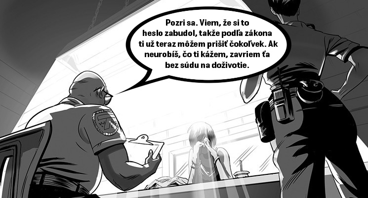 No len si skúste predstaviť, že v tom momente by k vám vrhla do bytu polícia a povedala, že na danom účte máte určite teroristickú komunikáciu a ak heslo neposkytnete, zavrú vás do cely za nespoluprácu na neurčito.