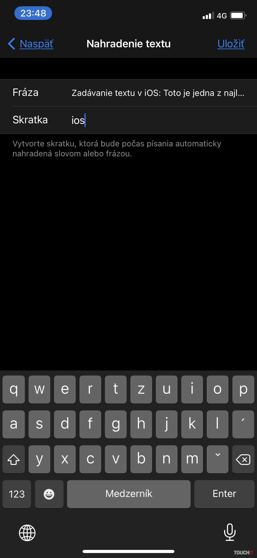 Kliknutím na „+“ vytvorte skratku, do poľa Fráza napíšte požadované slovo alebo frázu a pole Skratka ponechajte prázdne. Najlepšie na tom je, že všetky nastavené skratky sa synchronizujú naprieč všetkými zariadeniami v rámci iCloud účtu, takže skratky vytvoríte napr. na iPhone, no fungovať budú automaticky na všetkých vašich Apple zariadeniach. Synchronizáciu má zapnutú každý, hej? 🙂 Prečítajte si aj: https://staging.touchit.sk/dostali-ste-novy-iphone-toto-je-potrebne-urobit-pred-predajom-darovanim-toho-stareho/324848