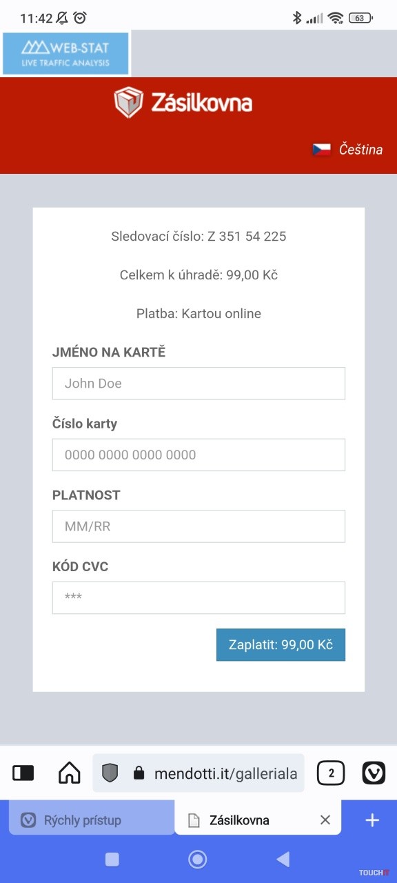 Nepodarilo sa nám prepnúť na slovenčinu, aby sme zistili koľko bude zásielka stáť v eurách. V českých korunách je to celkom 99 CZK. Jediné čo treba urobiť, je zadať údaje vašej platobnej karty aj s CVC kódom na zadnej strane.