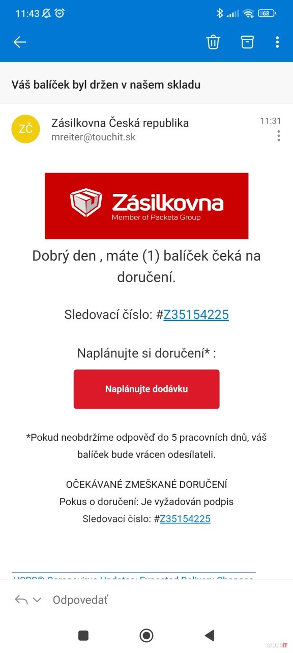 Spomedzi všetkých emailov, ktoré prúdia do našich schránok s cieľom pripraviť nás o peniaze je tu ďalší falošný email, tento zdanlivo patrí Zásielkovni. Vzhľadom na narastajúci počet zásielok, ktoré odosielame alebo prijímame, je tento podvod ideálny. Neprináša nič nové a kopíruje staré zaužívané zvyky, ako vás donútiť zadať číslo kreditnej karty do formulára na falošnej internetovej stránke.