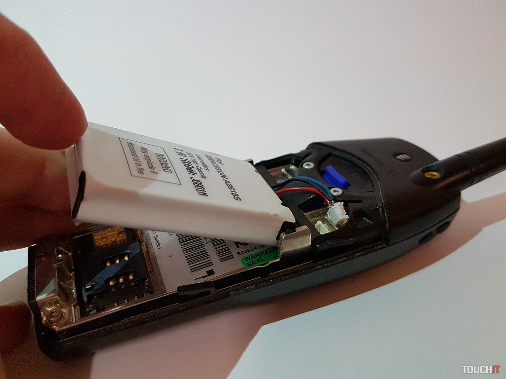 Batéria a jej uloženie je neuveriteľné. Patent za všetky drobné. Za prvé, batériu vsádzate špeciálnym „chvatom“ :), čo je „skvelé“. A napokon, ona nemá bežné kontakty, ona má káblové pripojenie s konektorom, ak ste s ňou neopatrne narábali, viete ako to dopadlo? Presne, odtrhnuté káble! Buď ste si ich šikovne opravili (je to pracné, osobná skúsenosť) alebo ste si museli kúpiť novú batériu, toto riešenie by som návrhárovi otrepal o … klávesnicu J. Kapacita NiMH batérie bola 750 mAh (naše zariadenie má 1000 mAh batériu z A2818). Výdrž dosahovala okolo troch dní bežného používania, vrátane WAP-u, čo je prijateľný údaj, však?