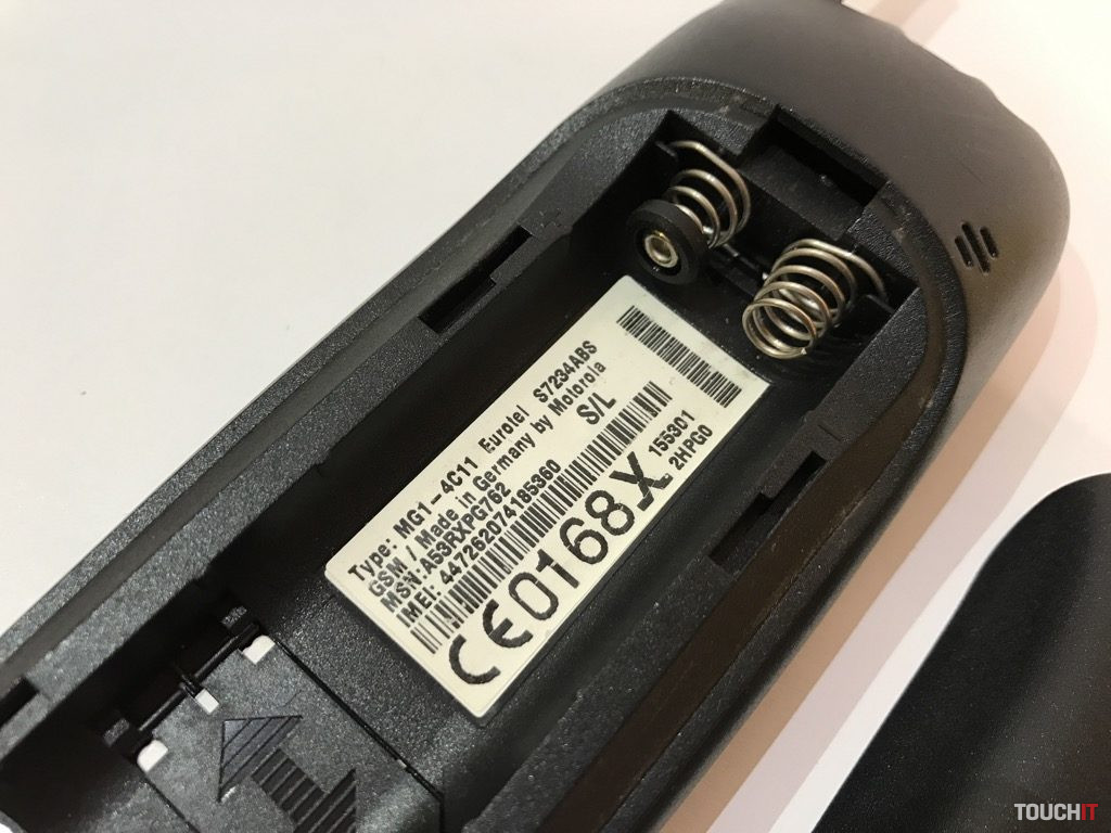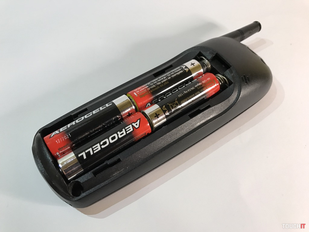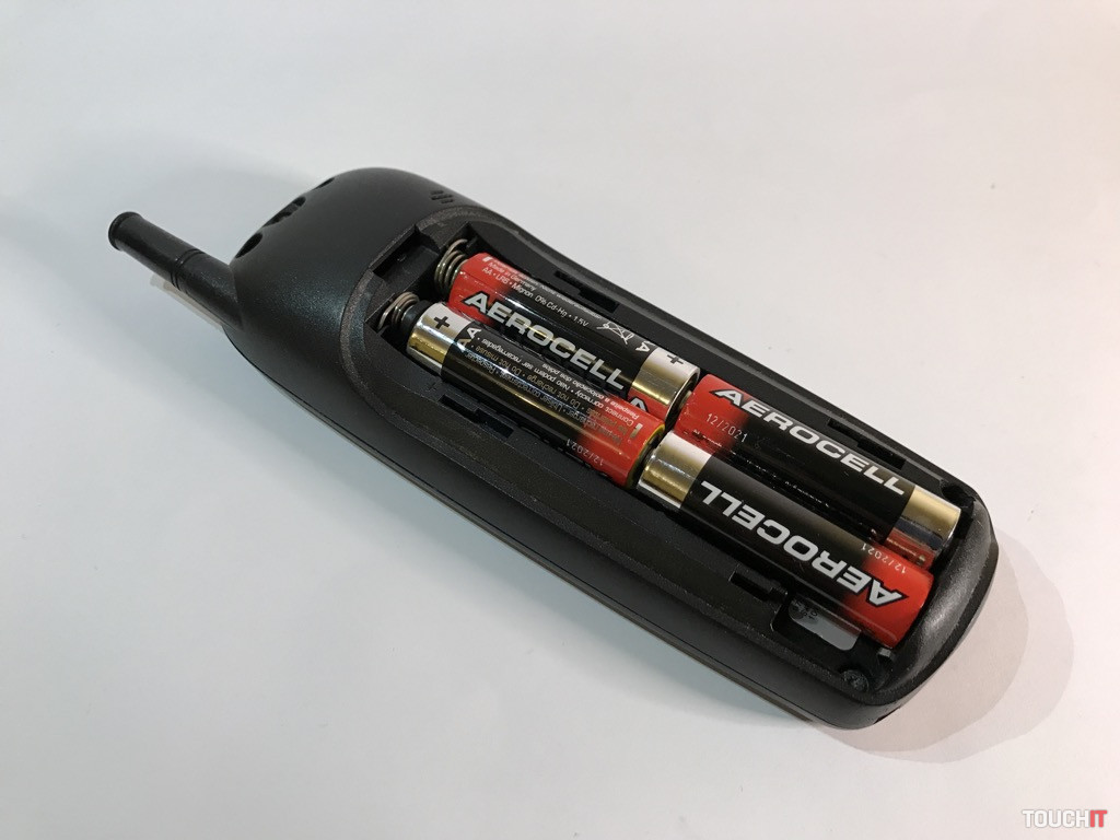 Jeho výhodou je, že okrem dodávanej batérie je možné telefón napájať štyrmi klasickými batériami – typ AA. Čiže, situácia – máte takmer vybitý telefón a potrebujete súrne volať. Riešenie – skočím do obchodu, kúpim baterky, nahádžem do telefónu a volám! Šikovné, čo poviete? Takéto riešenie bolo viditeľné u viacerých telefónov v tejto dobe.