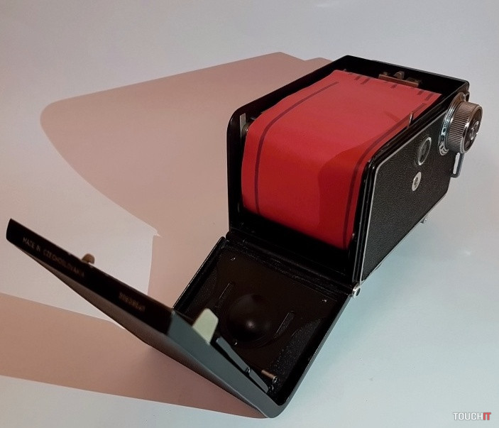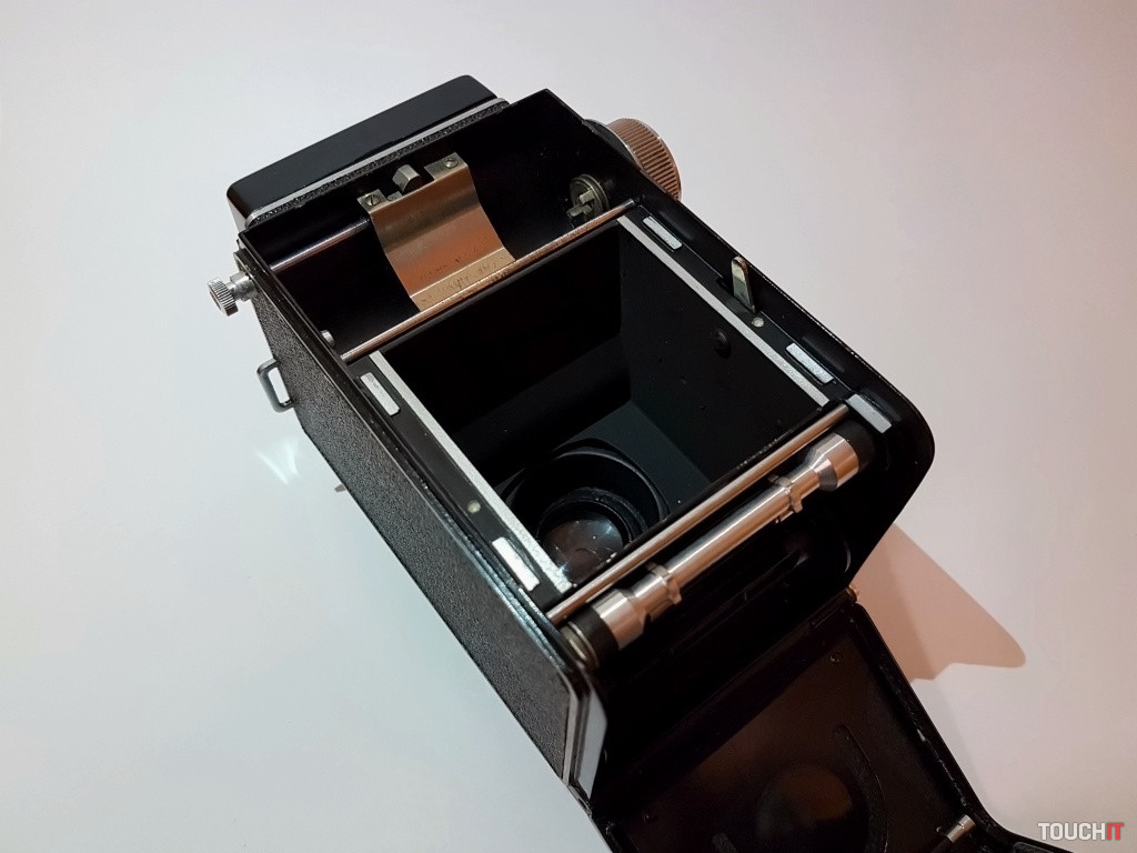 Poslednou zaujímavou časťou sú útroby Flexaretu, kde sa aplikoval zvitkový film. Takmer celá (otvárateľná) zadná strana zariadenia je kryt tejto „filmovej časti, kde to celé vznikalo“.