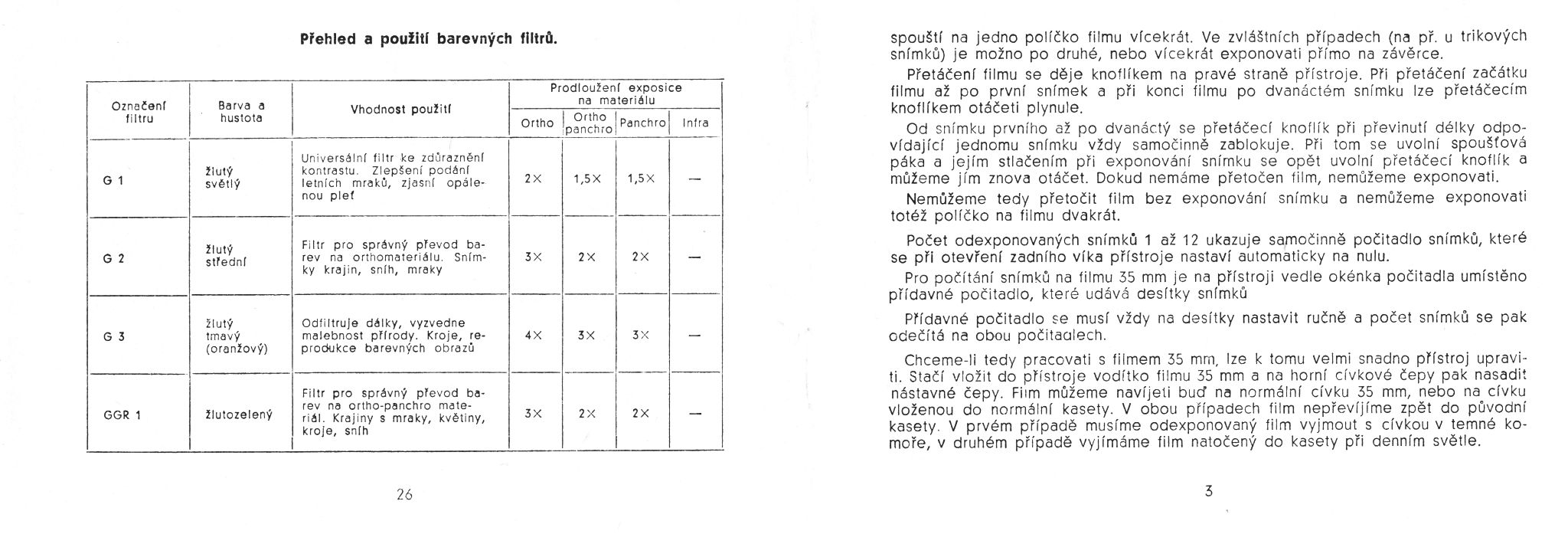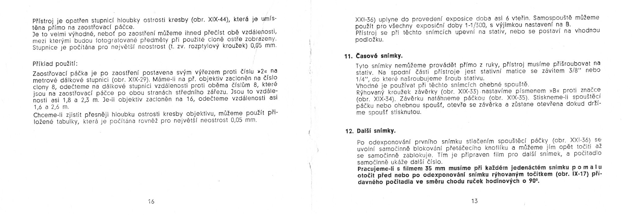 Uzávierka: Metax 1s – 1/400s (používala sa aj uzávierka Prontor SVS 1s – 1/300s)