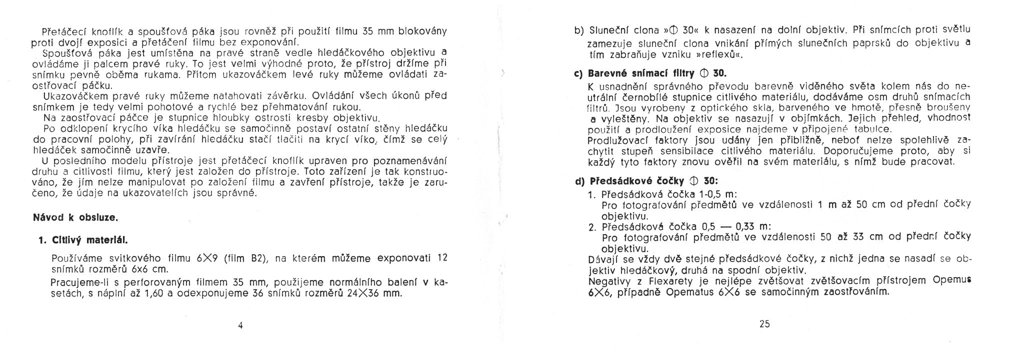 Originálny návod k mechanickej zrkadlovke Flexaret IVa