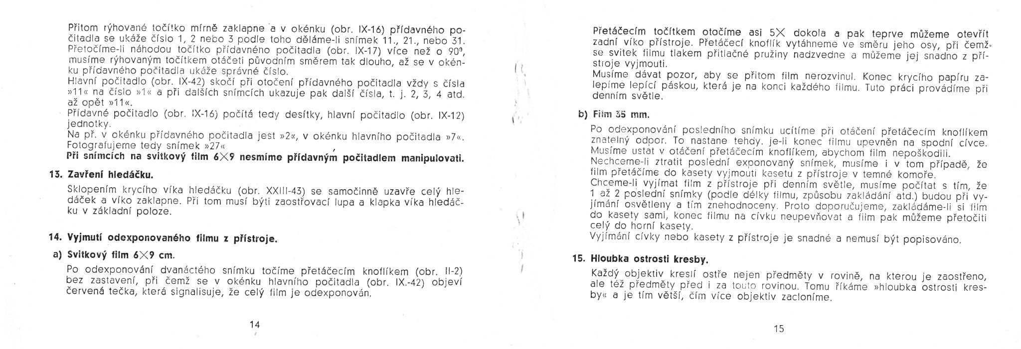 Počítadlo: mechanické a spojené s posunom filmu, blokovanie dvojitého osvitu filmu, naťahovanie uzávierky nebolo kombinované s pretáčaním filmu.