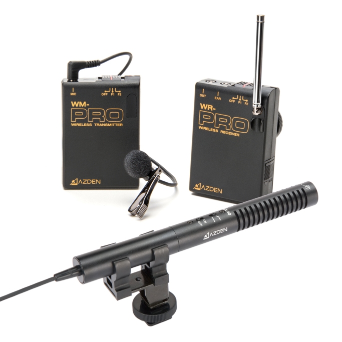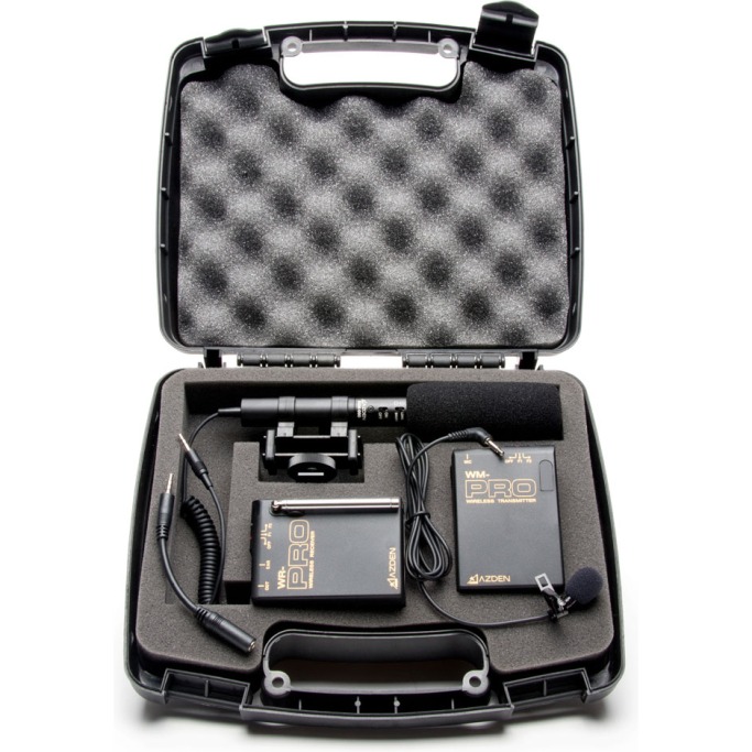 AZDEN i-Coustics WHD-PRO je riešenie typu všetko v jednom. Vo vnútri odolného pastového kufríka nájdete všetko podstatné na reportážnu prácu. Máte tu prijímač s vysúvateľnou teleskopickou anténou a pripojením do koľajničky kamery alebo fotoaparátu pre rozširujúce príslušenstvo (napr. svetlo alebo blesk). Prijímač má výstup na pripojenie do mikrofónového vstupu do kamery alebo fotoaparátu (príslušný kábel s dvoma 3,5 mm jack konektormi si treba dodatočne zaobstarať) a tiež je tu výstup na slúchadlá.
