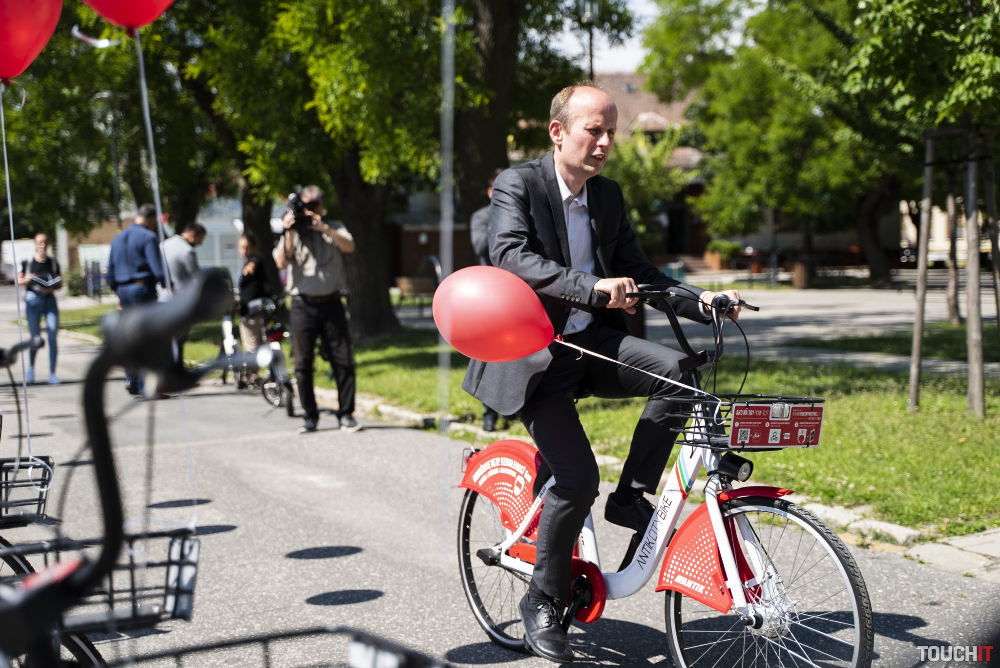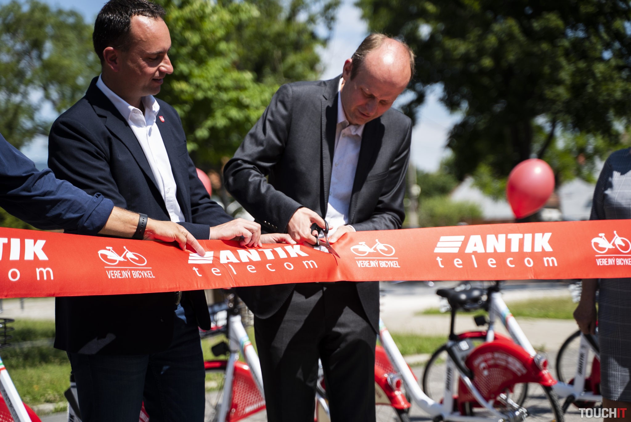 Slávnostné uvedenie mestskej časti Vajnory do služby Verejný bicykel. Starosta Vajnor Michal Vlček a zástupca Antik Peter Blaas