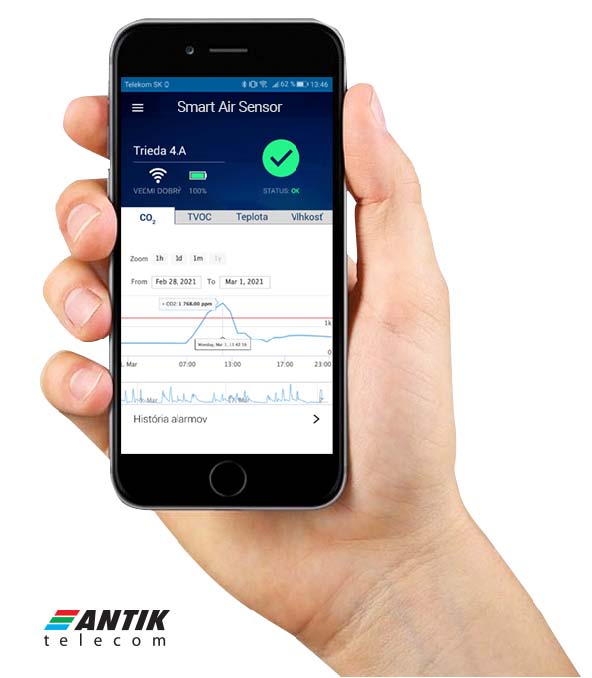 „CO2 pri vysokých hladinách negatívne vplýva na koncentráciu človeka a tým aj jeho schopnosť vnímať napríklad učiteľa pri výklade. Už v testovacej prevádzke sme namerali v triedach po pár hodinách výučby hodnoty nad 2000ppm, čo je skutočne povážlivé,“ vysvetľuje Igor Kolla CEO Antik Technology.