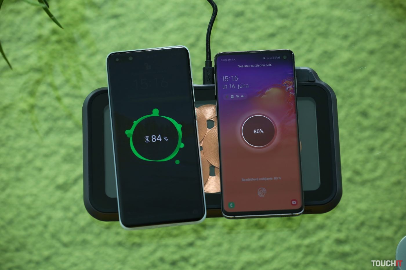Na nabíjačku sa bez problémov zmestia dva smartfóny vedľa seba. S trochou šikovnosti sme vedľa seba položili aj tri telefóny, nabíjali sa iba dva. Okrem telefónu môžete nabíjať aj ďalšie zariadenia s podporou bezdrôtového Qi nabíjania – s najväčšou pravdepodobnosťou to budú bezdrôtové slúchadlá, ak ich používate v obale, ktorý umožňuje bezdrôtové nabíjanie.