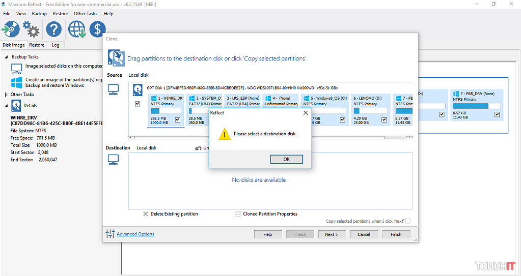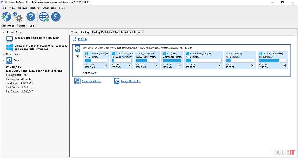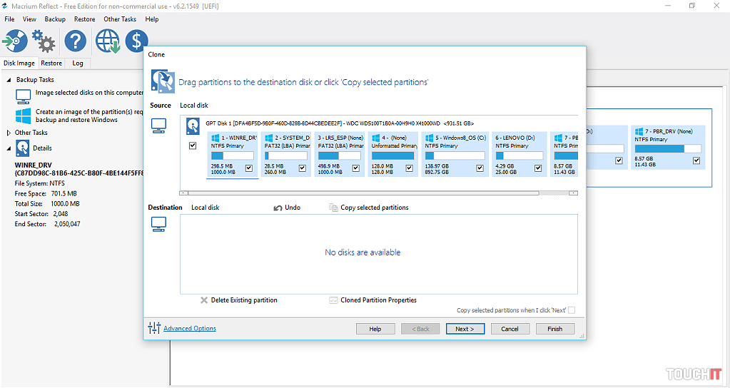 Po tomto kroku nasleduje výber správneho programu na klonovanie. Ten musí kompletne a bez pochybenia preniesť všetky partície Windows-u na nový SSD disk tak, aby po vymenení fungoval korektne. Takýchto programov je viacero, väčšina platených, ale my sme vyskúšali taký, ktorý má „30 days free“, čiže na jeden prenos (klonovanie) stačí. A pritom všetko oficiálne. Voľba padla na – Macrium Reflect Free. Veľmi jednoduchý program, ktorý pracuje intuitívne a je zrozumiteľný, myslíme, že pre každého (nebudeme rozoberať všetko, čo sa dá v programe spraviť, len klonovanie). Použiť môžete aj riešenie od firmy Acronis.