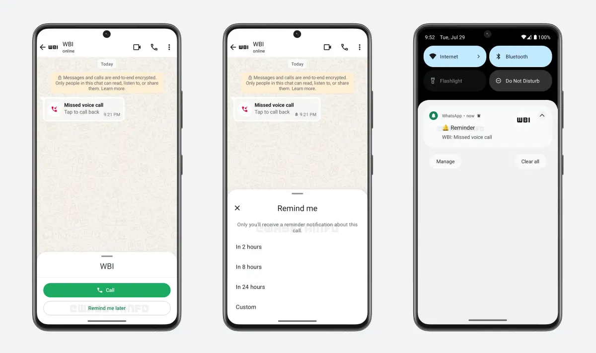 Týkať sa to bude len hovorov v rámci aplikácie WhatsApp, nie teda iných aplikácií. Fungovať to bude v praxi tak, že akonáhle vám niekto zavolá a vy nebudete mať čas na to, aby ste hovor prijali, tak vám aplikácia dá možnosť zapnúť si neskoršiu pripomienku. Táto pripomienka môže byť o 2, 8 alebo 24 hodín, prípadne bude možné nastaviť si vlastný čas notifikácie. Táto možnosť umožní používateľom nastaviť si, aby ich upozornenie na zmeškaný hovor informovalo napríklad po práci alebo v čase, kedy na hovor budú mať s istotou priestor.