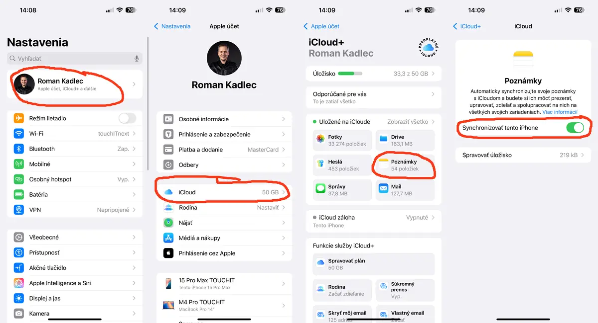 Za seba dodám, že v niektorých prípadoch môže pomôcť, keď v nastaveniach iCloudu > Poznámky vypnete možnosť Synchronizovať a následne ju opäť zapnete.