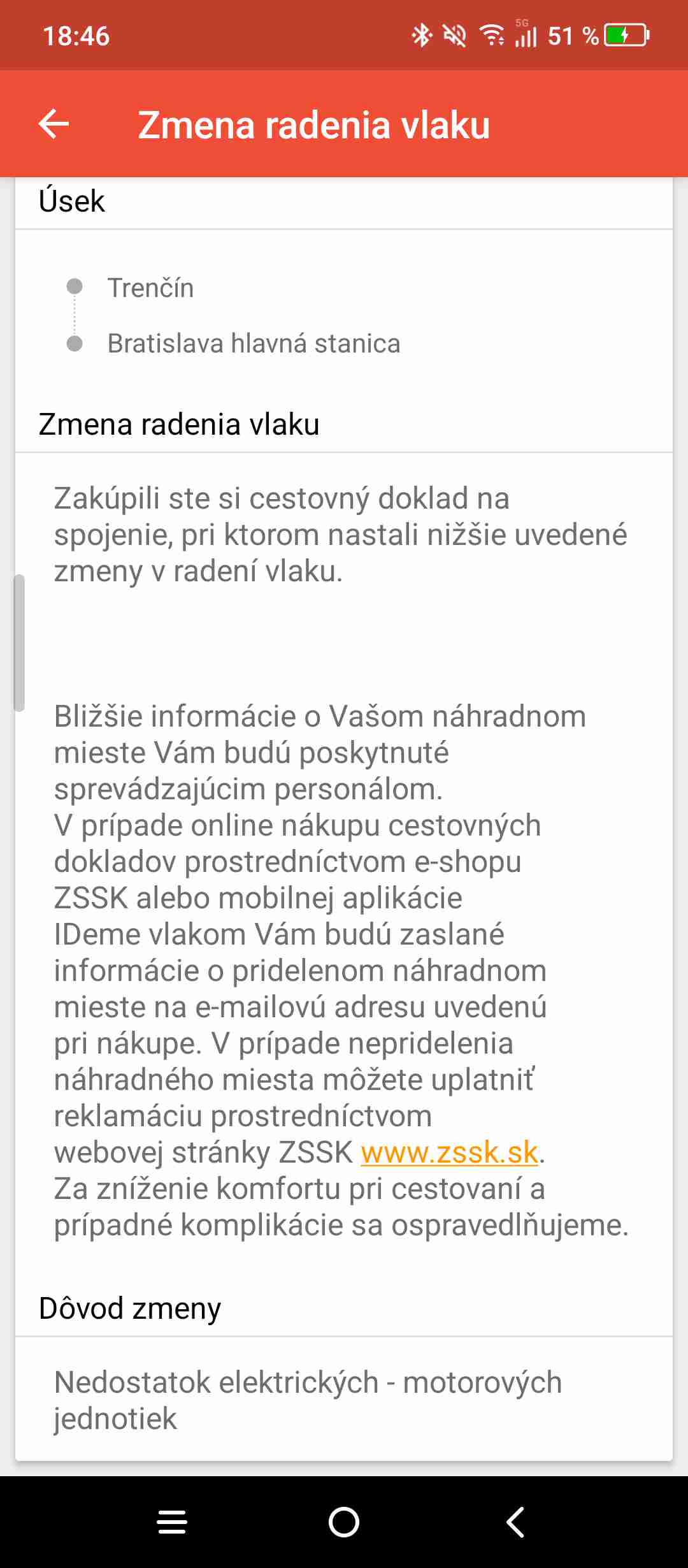 Ďalšou zmenou je pridanie informácií o mimoriadnych situáciách. Dozviete sa ich priamo v aplikácii na základe piktogramu u každého spojenia. Ťuknutím naň sa zobrazia ďalšie detaily. Hlásenia zo strany ZSSK máte možnosť sledovať aj na sieti Threads alebo na Mastodone.